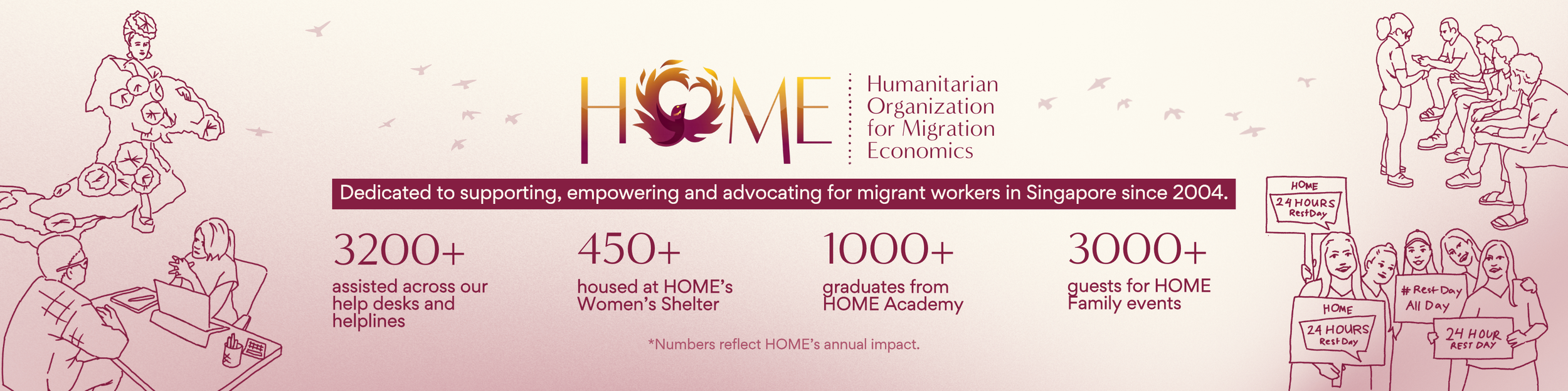 Employment advice and legal aid for migrant workers in Singapore, and when they have returned to their countries of origin.