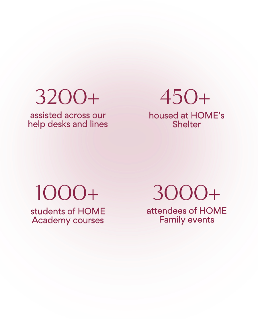 In 2026, it will cost more than $1.7million to run all our services, from the Shelter, Helpdesks, HOME Academy and HOME family community activities. We seek your financial support to sustain our essential operations.