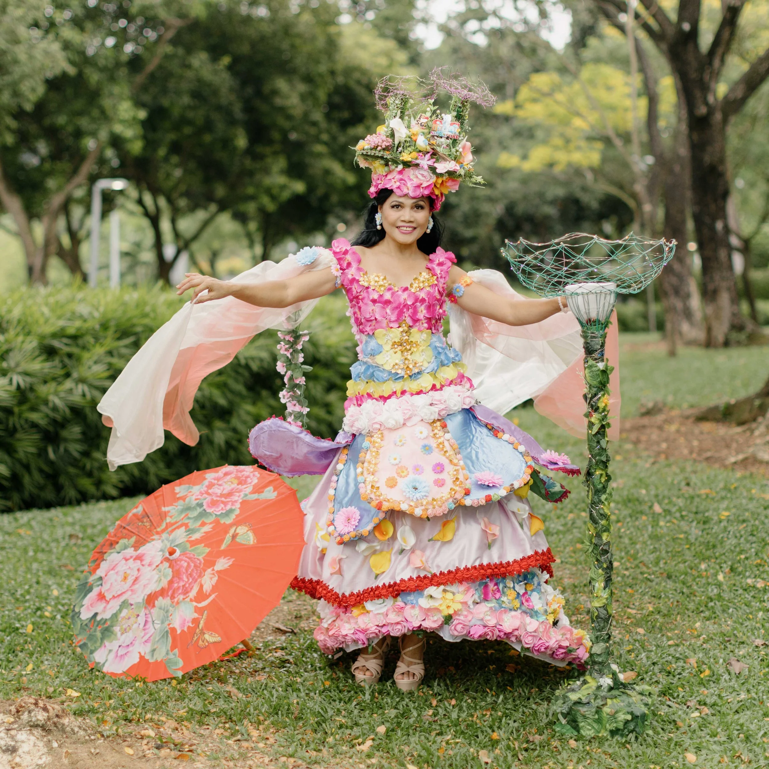 For my portrait, I wore one of my my own creations: a flower dress with headdress and props inspired by Gardens by the Bay.