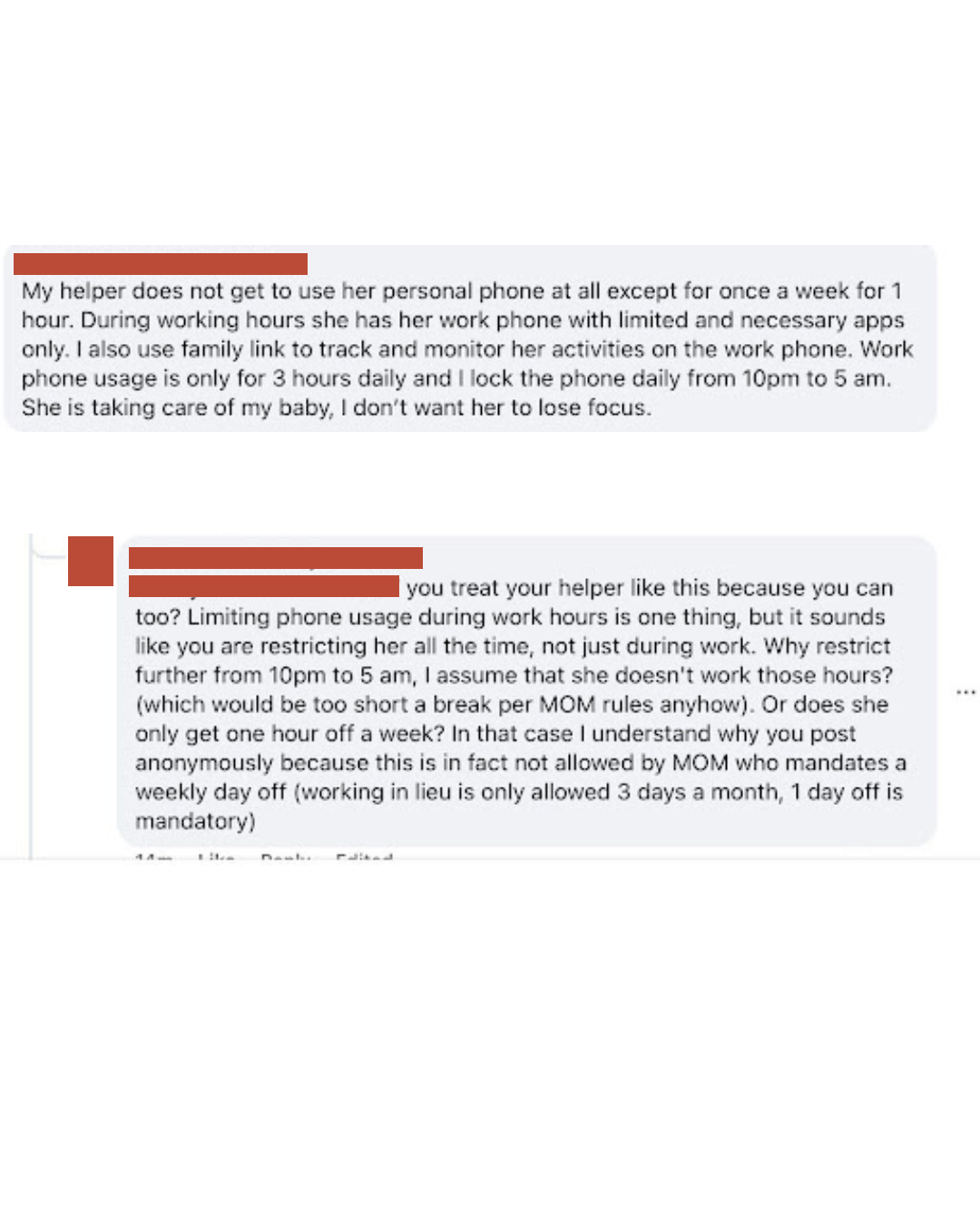 In another case, an MDW succeeded to convince her employer to allow her access to her phone: