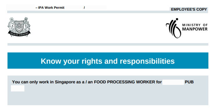 Some workers were also unaware that their occupations on the IPAs are listed as food processing workers. Migrant workers rely on IPAs to make sense of the jobs they are signing up for — it is an official document issued by the Ministry of Manpower which sets out their basic salary, allowances, rate of overtime pay, and rate of basic pay. It also includes the names of their employer that they are legally allowed to work for, and identifies the agents that processed their applications. In the event of workplace disputes, the IPA serves as a key piece of evidence that sets out workers’ entitlements. It is therefore essential that IPAs provide accurate information regarding the nature of the work employees will be performing. Allowing employers to input details unrelated to the actual tasks at hand renders the IPA ineffective and irrelevant.